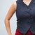 Chaleco  con cuello, confeccionado en twill elástico, y botones grandes con detalle en mostaza.